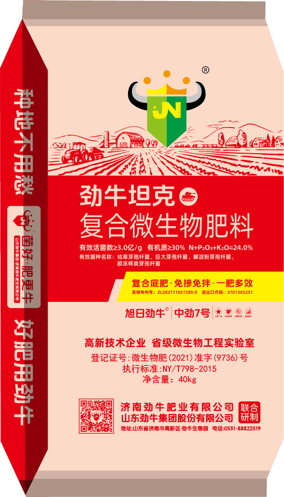 本品是集有機、無(wú)機、微生物于一體的大三元復合底肥,由勁牛集團、濟南勁牛肥業(yè)有限公司聯(lián)合研制,有機負載無(wú)機、生物促進(jìn)轉化,大三元復合、相互補充、相互促進(jìn)。