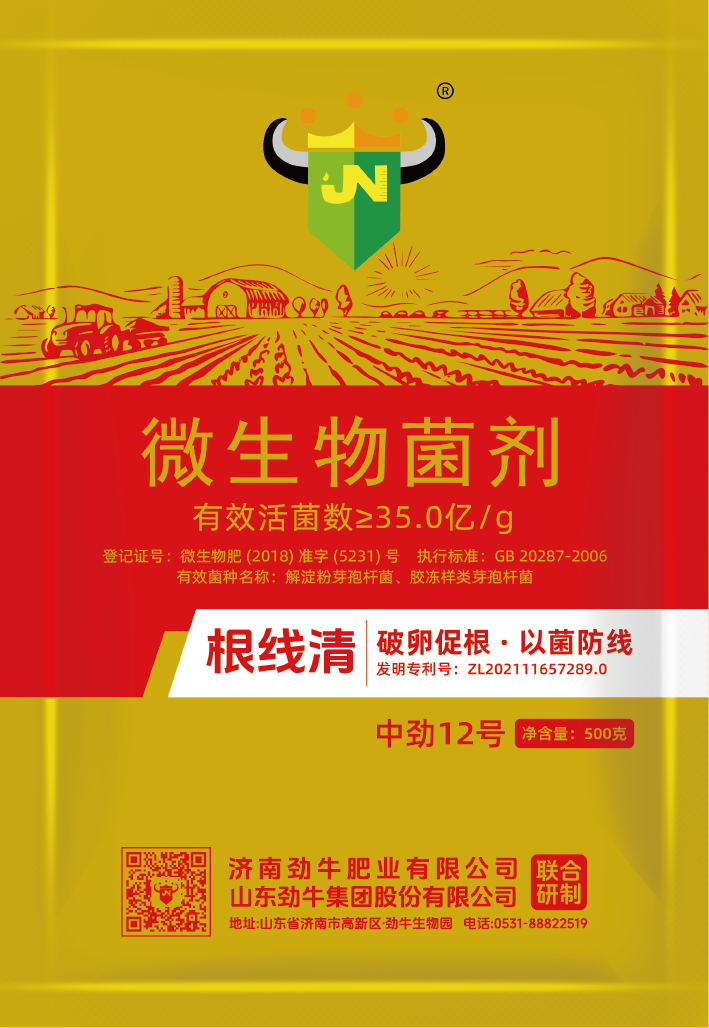 本品針對作物線(xiàn)蟲(chóng)危害,由勁牛集團、濟南勁牛肥業(yè)有限公司聯(lián)合研制,內含解淀粉芽孢桿菌、膠凍樣類(lèi)芽孢桿菌、哈茨木霉、淡紫擬青霉、微白黃鏈霉菌、假格里尼翁蒼白桿菌等微生物菌群,抑制各種線(xiàn)蟲(chóng),減輕線(xiàn)蟲(chóng)危害,產(chǎn)生農作物需要的植物激素、酸性物質(zhì)及維生素、抗菌素、系統防衛酶等多種物質(zhì),促進(jìn)作物生長(cháng)。
